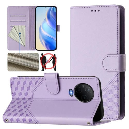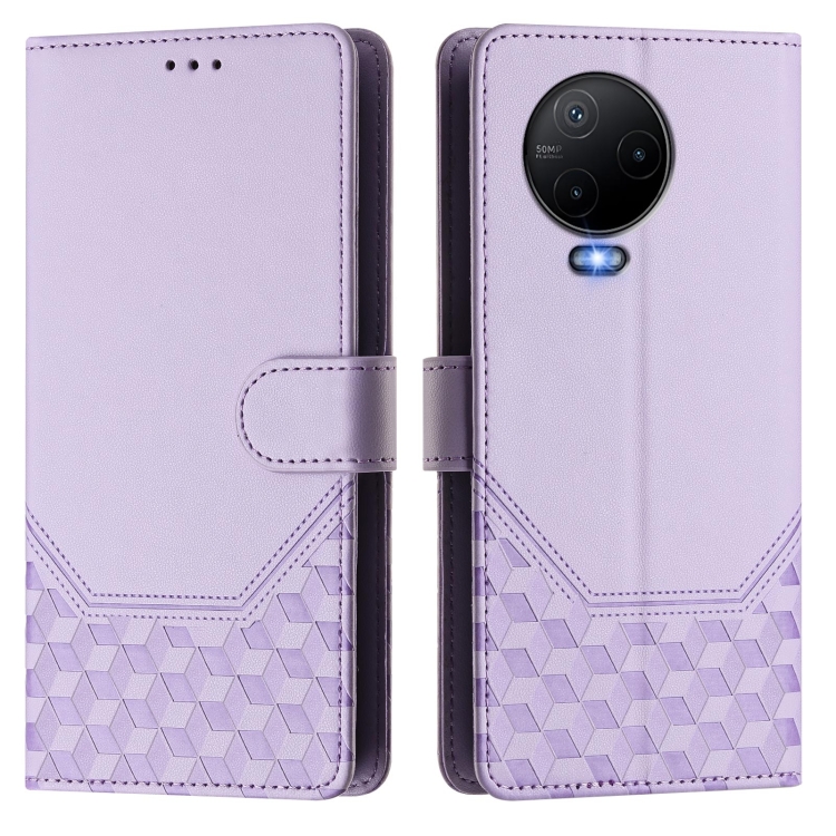 Funda de Cuero Rfid con Relieve en Panal para Infinix Note 12 4G y Note 12 Pro 4G (Morado Claro)