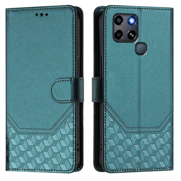 Funda de Cuero RFID con Relieve en Panal para Infinix Smart 6/6 Plus/6 HD (Verde Pavo Real)
