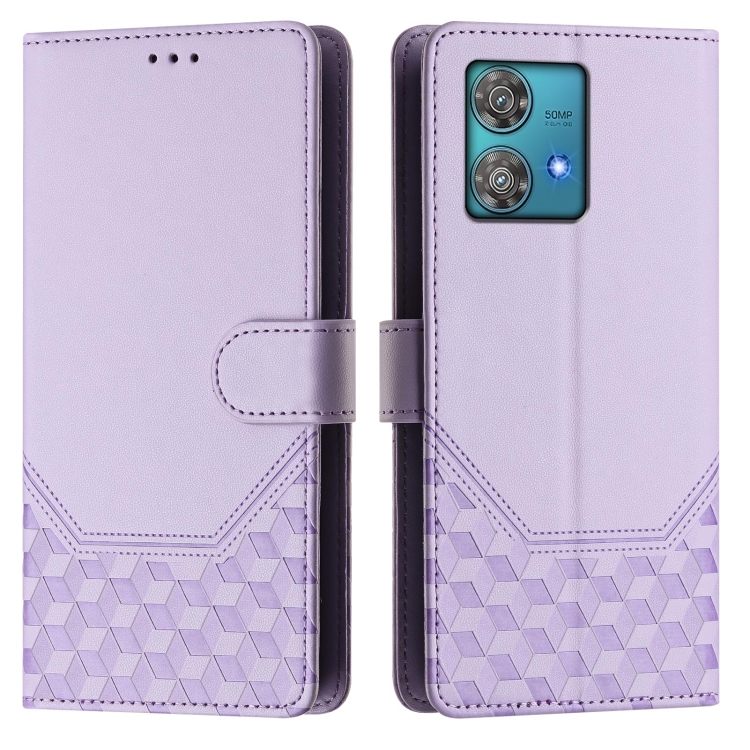 Funda de Cuero Rfid con Relieve en Panal para Motorola Edge 40 Neo 5G (Morado Claro)