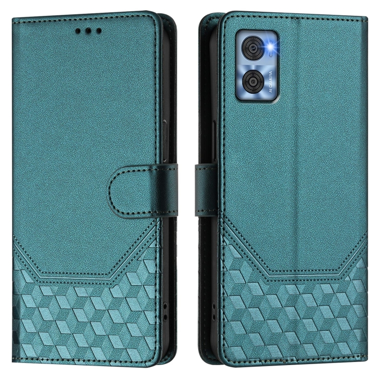 Funda de Cuero Rfid con Relieve en Panal para Motorola Moto E22 4G/E22I 4G (Verde Pavo Real)