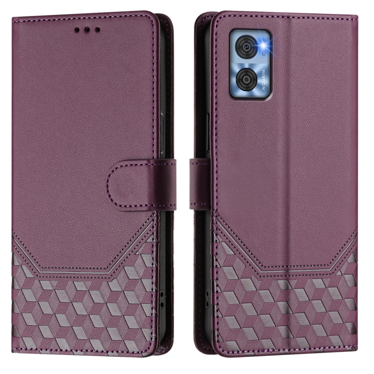Funda de Cuero Rfid con Relieve en Panal para Motorola Moto E22 4G/E22I 4G (Violeta)
