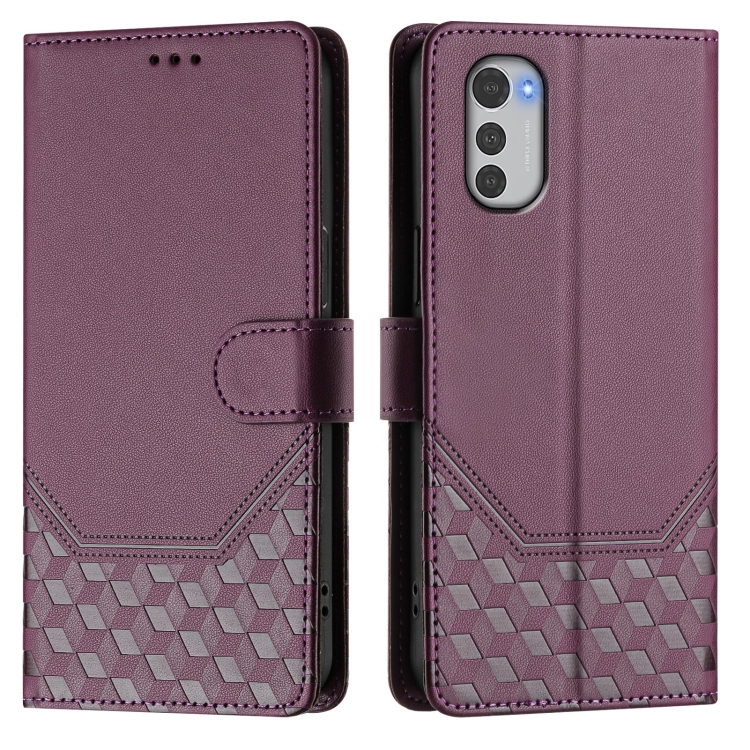 Funda de Cuero Rfid con Relieve en Panal para Motorola Moto E32 4G (Violeta)