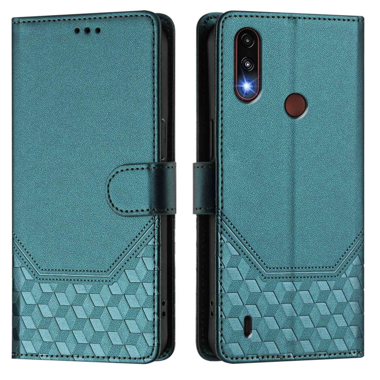 Funda de Cuero Rfid con Relieve en Panal para Motorola Moto E7 Power (2021) (Verde Pavo Real)