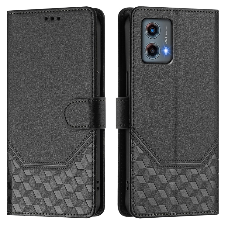Funda de Cuero Rfid con Relieve en Panal para Motorola Moto G 5G 2023 (Negra)