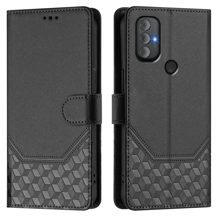 Funda de Cuero Rfid con Relieve en Panal para Motorola Moto G Power 2022 (Negro)