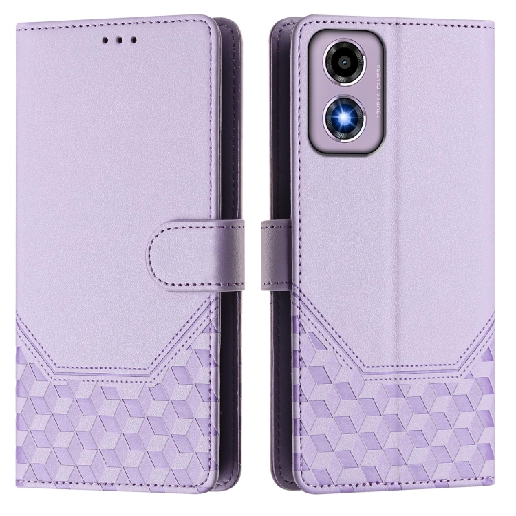 Funda de Cuero Rfid con Relieve en Panal para Motorola Moto G04 4G/G04S 4G (Morado Claro)