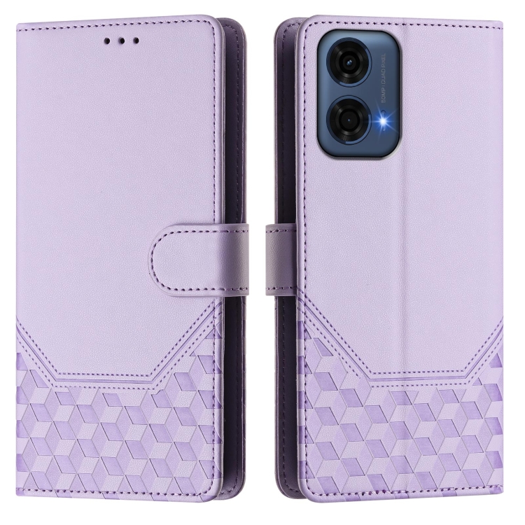 Funda de Cuero Rfid con Relieve en Panal para Motorola Moto G24 Power 4G (Morado Claro)