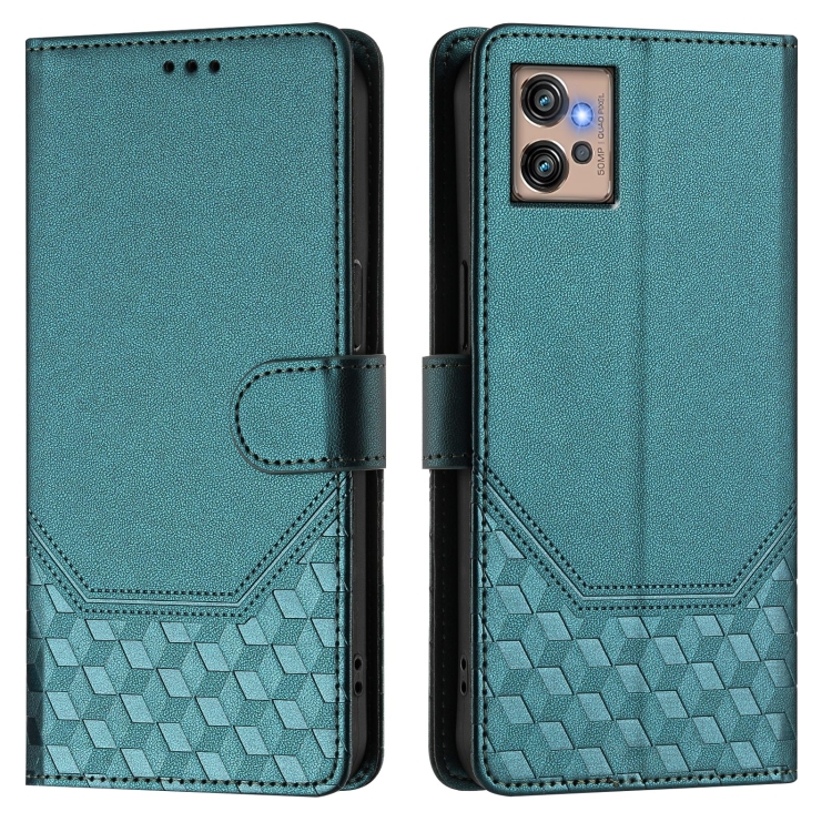 Funda de Cuero Rfid con Relieve en Panal para Motorola Moto G32 (Verde Pavo Real)