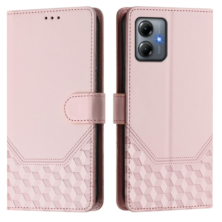 Funda de Cuero Rfid con Relieve en Panal para Motorola Moto G54 Brasil/G54 5G UE (Rosa)