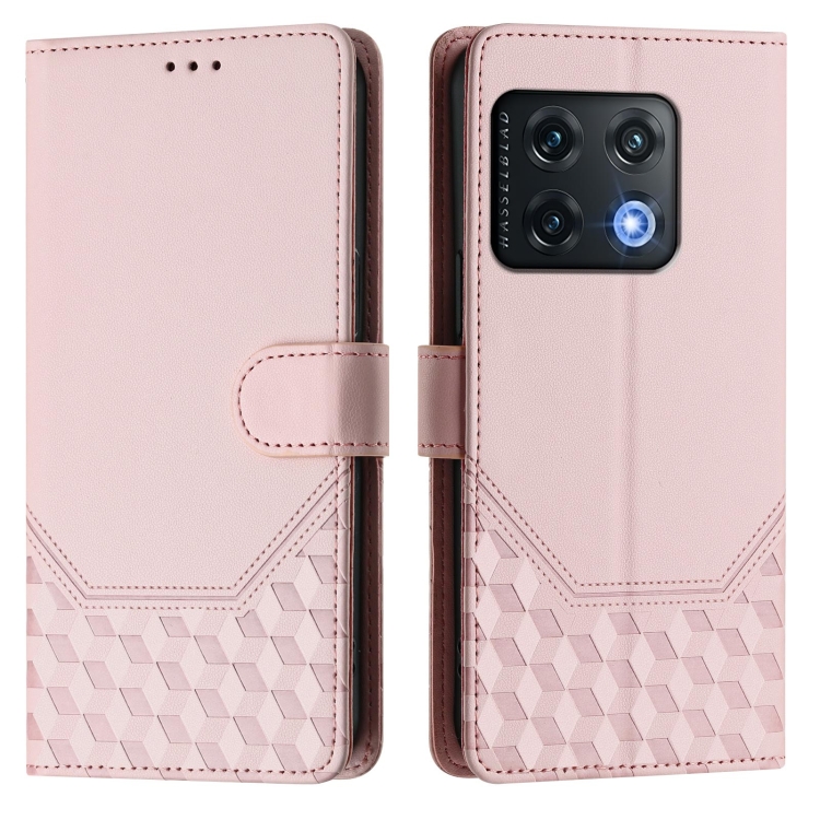 Funda de Cuero Rfid con Relieve en Panal para OnePlus 10 Pro 5G (Rosa)