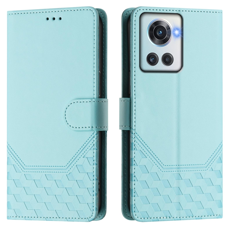 Funda de Cuero Rfid con Relieve en Panal para OnePlus 10R/Ace (Verde Menta)