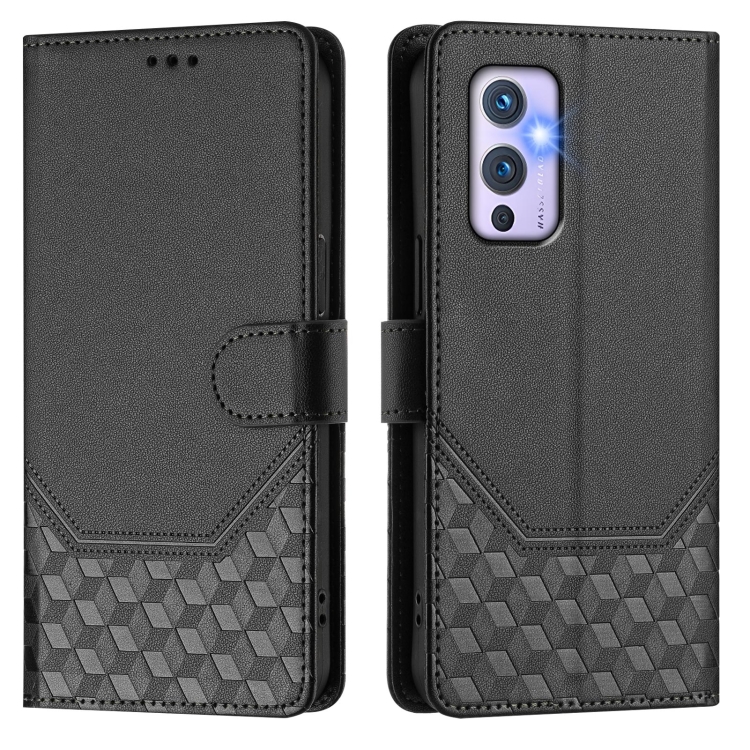 Funda de Cuero Rfid con Relieve en Panal para OnePlus 9 (Negra)