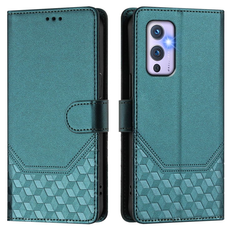 Funda de Cuero Rfid con Relieve en Panal para OnePlus 9 (Verde Pavo Real)