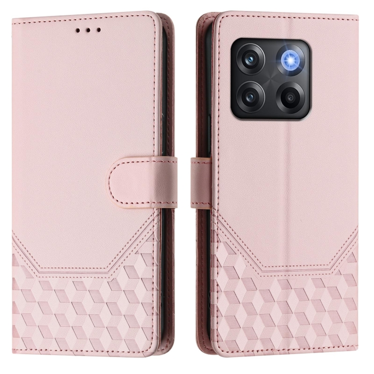 Funda de Cuero Rfid con Relieve en Panal para OnePlus Ace Pro 5G/10T 5G (Rosa)