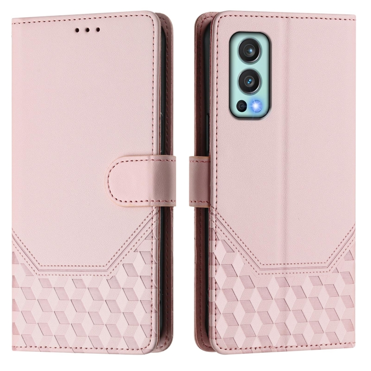 Funda de Cuero Rfid con Relieve en Panal para OnePlus Nord 2 (Rosa)