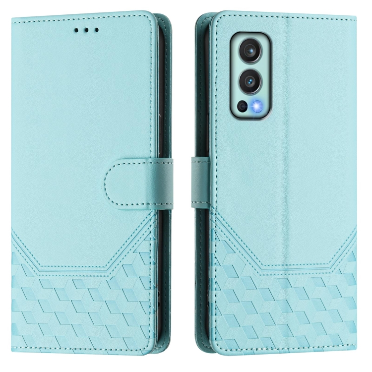 Funda de Cuero Rfid con Relieve en Panal para OnePlus Nord 2 (Verde Menta)