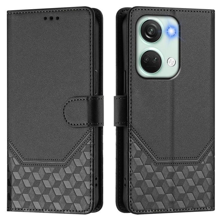 Funda de Cuero Rfid con Relieve en Panal para OnePlus Nord 3/Ace 2V (Negra)