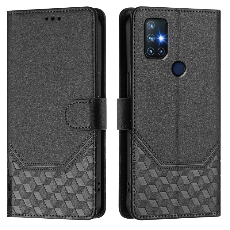 Funda de Cuero Rfid con Relieve en Panal para OnePlus Nord N10 5G (Negra)