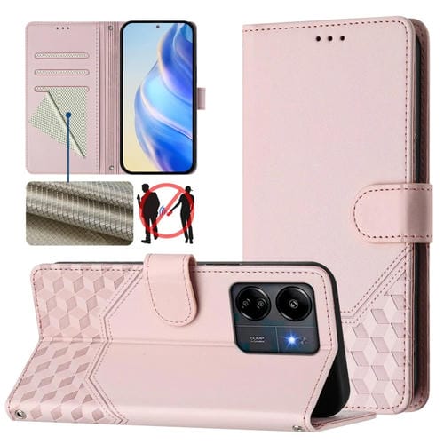 Funda de Cuero Rfid con Relieve En Panal para Redmi 13C 4G (Rosa)