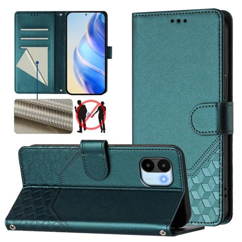 Funda de Cuero Rfid con Relieve En Panal para Redmi A1 4G/A2 4G (Verde Pavo Real)