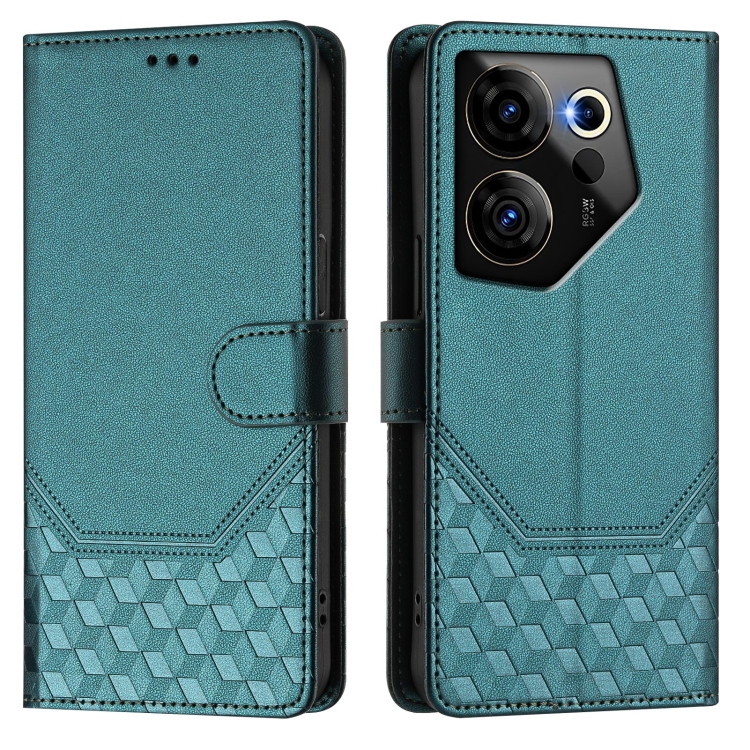 Funda de Cuero RFID con Relieve en Panal para Tecno Camon 20 Premier 5G (Verde Pavo Real)