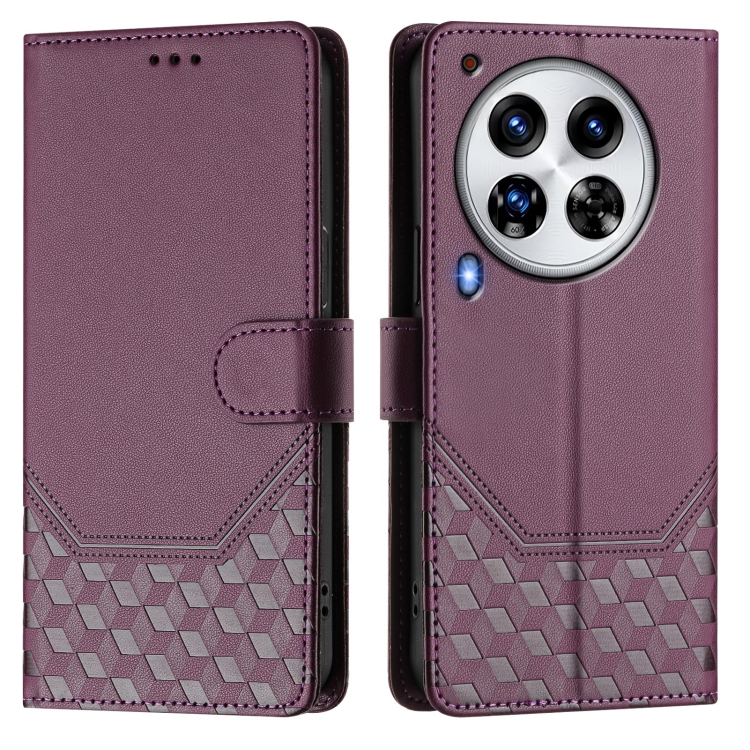 Funda de Cuero Rfid con Relieve en Panal para Tecno Camon 30 Premier 5G (Violeta)