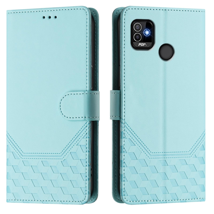 Funda de Cuero Rfid con Relieve en Panal para Tecno Pop 5 (Verde Menta)