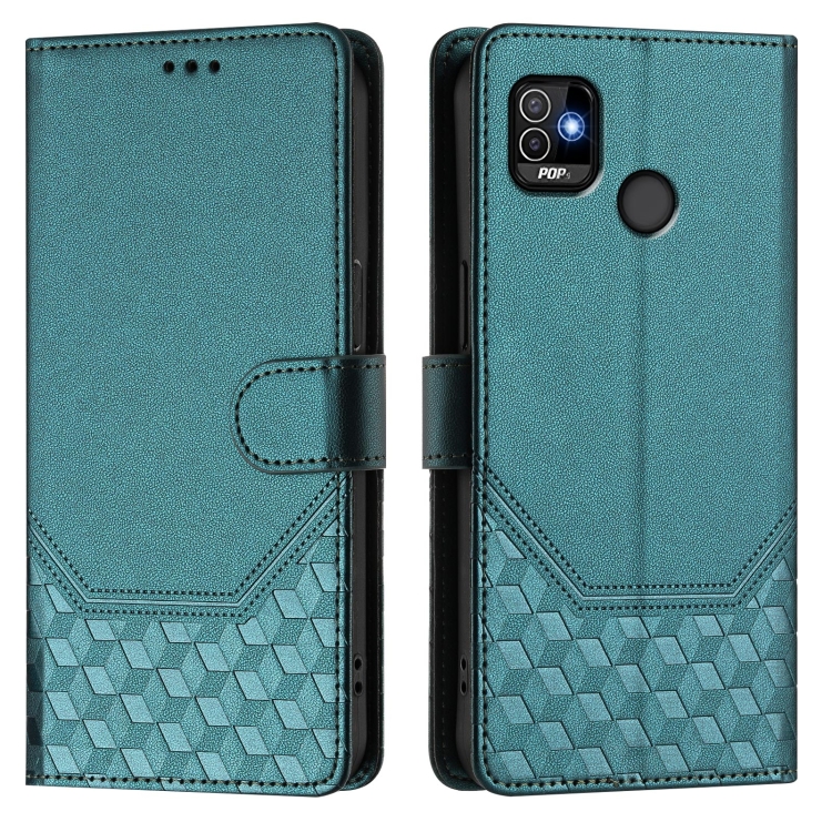 Funda de Cuero Rfid con Relieve en Panal para Tecno Pop 5 (Verde Pavo Real)