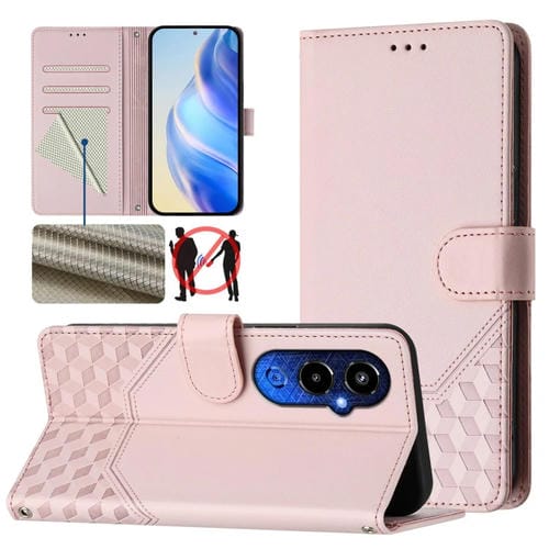 Funda de Cuero Rfid con Relieve en Panal para Tecno Pova 4 Pro 4G (Rosa)