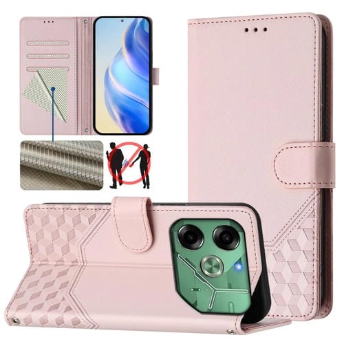 Funda de Cuero Rfid con Relieve en Panal para Tecno Pova 6 4G (Rosa)