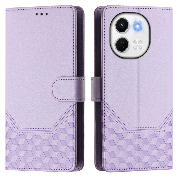 Funda de Cuero Rfid con Relieve en Panal para Tecno Spark 30 5G (Morado Claro)