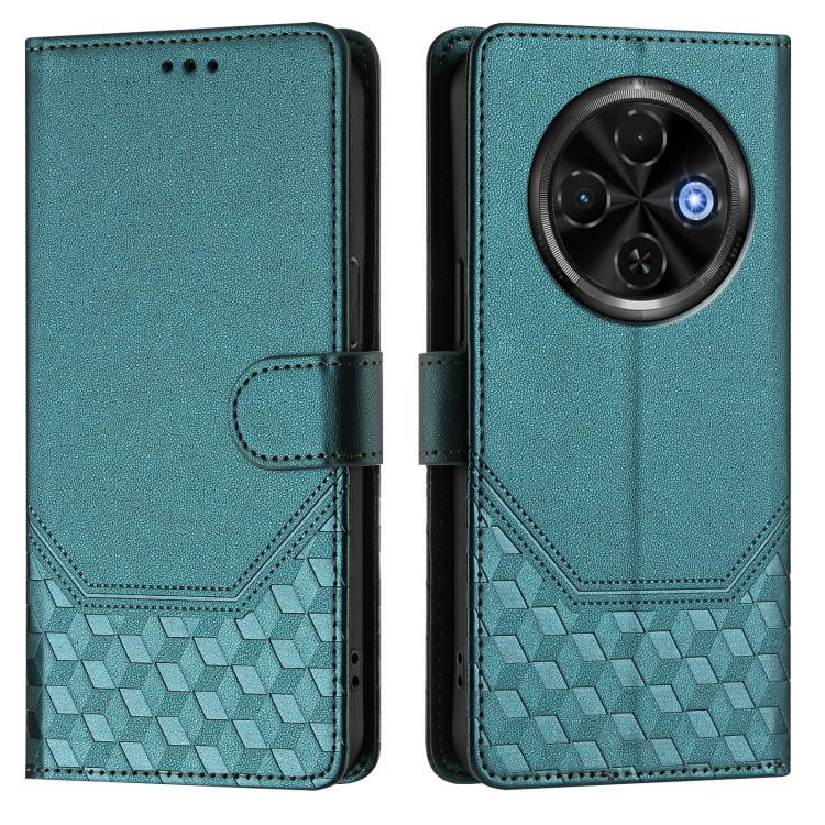 Funda Cuero Rfid Relieve Panal Tecno Spark 30C 5G Pop 9 5G (Verde Pavo Real)