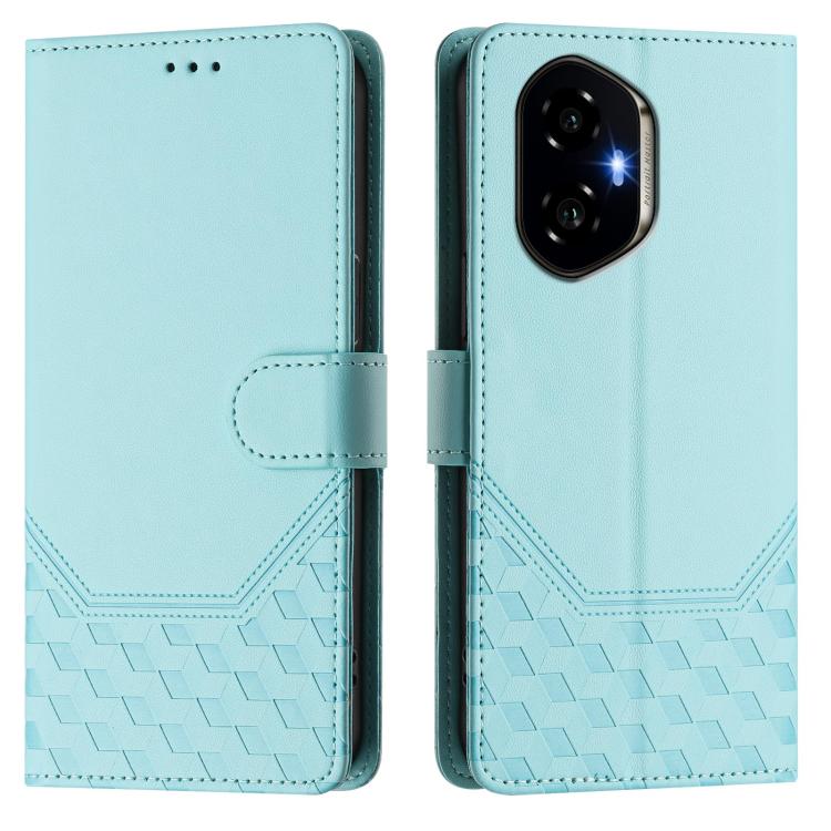 Funda de Cuero Rfid con Relieve en Panal para Honor 300 5G (Verde Menta)