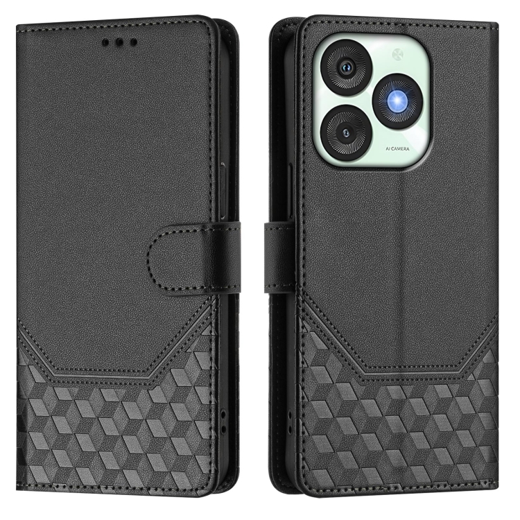 Funda de Cuero Rfid con Relieve en Panal para Teléfono Itel A50 (Negra)