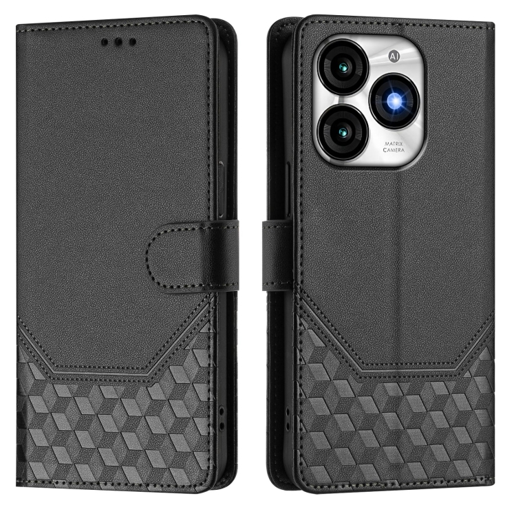 Funda de Cuero Rfid para Teléfono Itel A70 con Relieve en Panal (Negra)