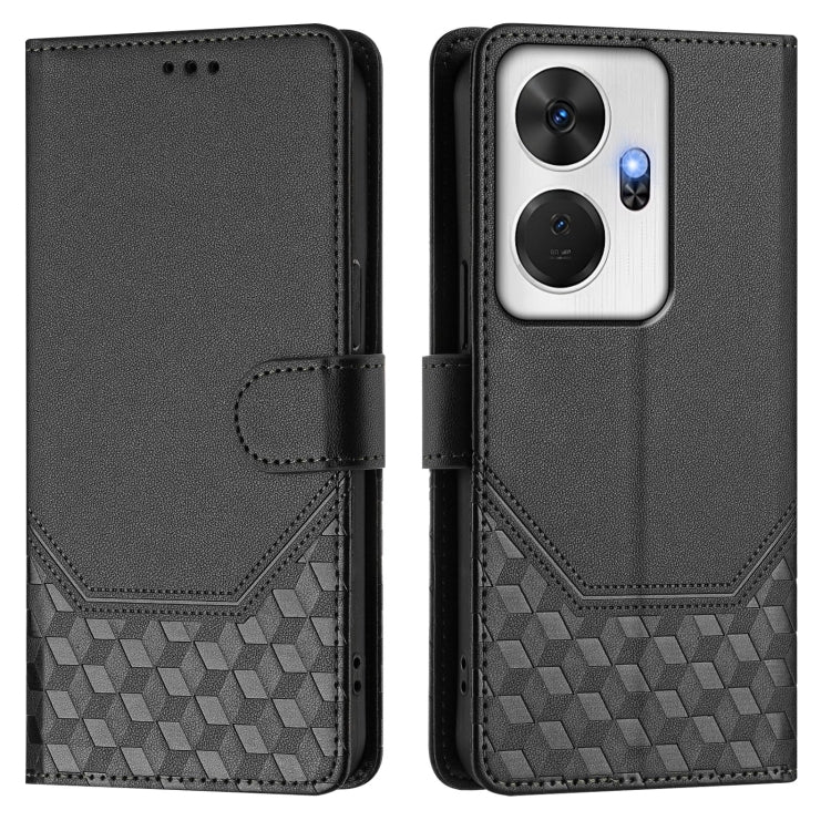 Funda de Cuero RFID con Relieve en Panal para Teléfono Itel P55+ (Negra)