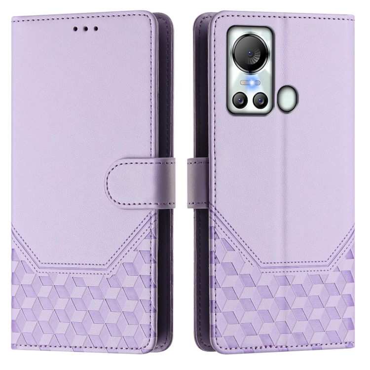 Funda de Cuero Rfid con Relieve en Panal para Teléfono Itel S18 (Morado Claro)