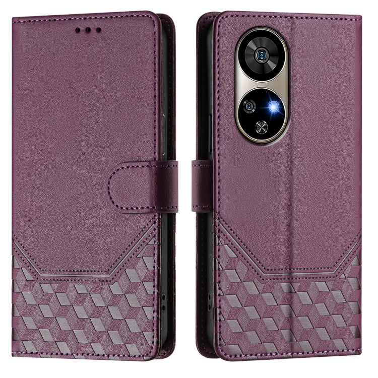 Funda de Cuero Rfid con Relieve en Panal para Ulefone Note 17 Pro (Violeta)