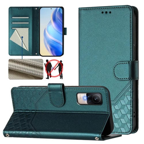 Funda de Cuero Rfid con Relieve En Panal para Xiaomi Civi 1S (Verde Pavo Real)