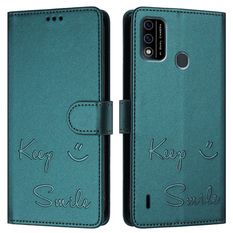 Funda de Cuero Rfid con Relieve Smile para Teléfono Itel A48 (Verde Pavo Real)