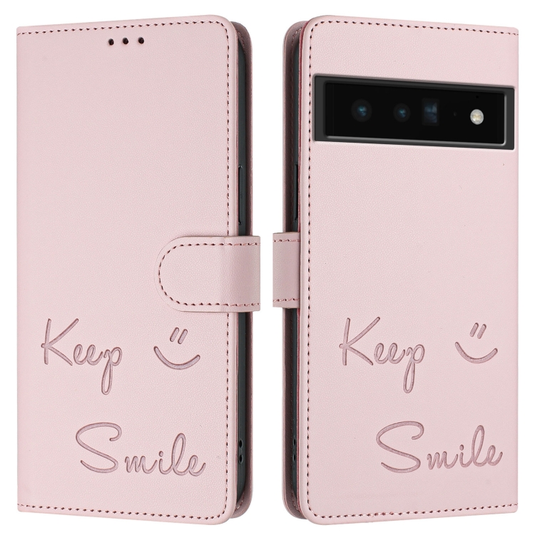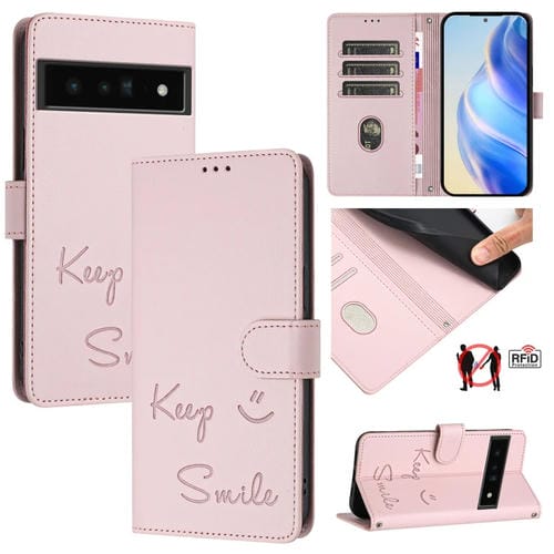 Funda de Cuero Rfid para Google Pixel 6 Pro con Relieve Sonriente (Rosa)