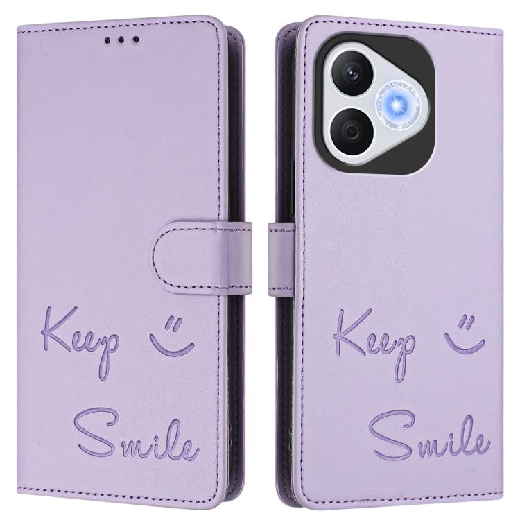 Funda de Cuero Rfid con Relieve Sonriente para Honor 400 Lite (Morado Claro)