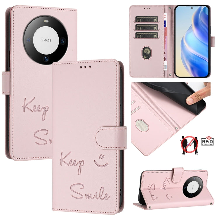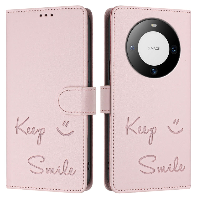 Funda de Cuero Rfid con Relieve Sonriente para Huawei Mate 60 Pro/60 Pro+ (Rosa)