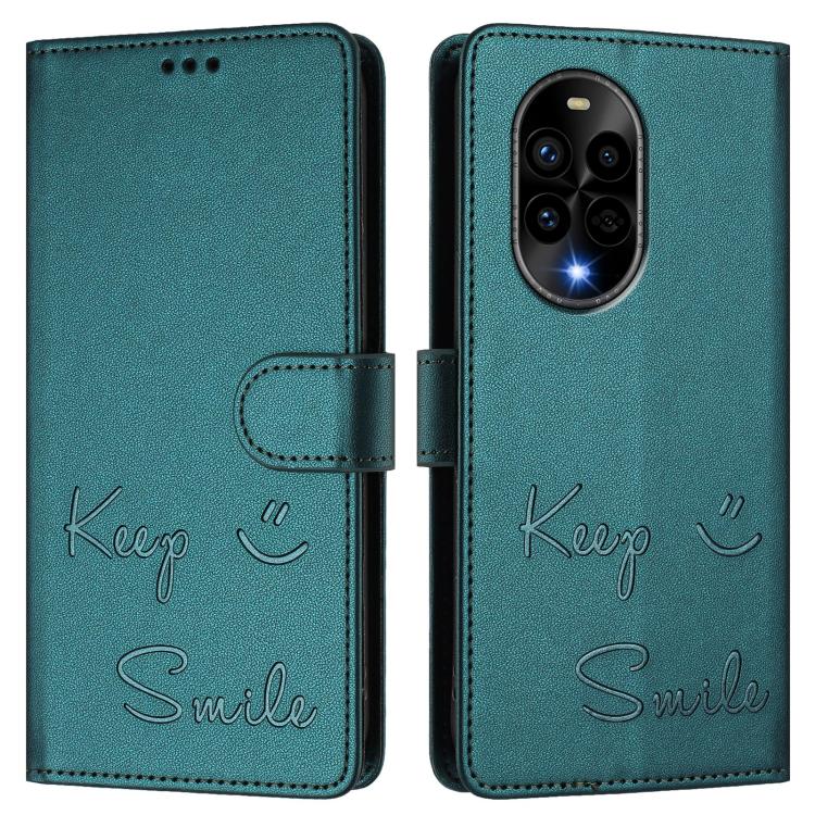 Funda de Cuero Rfid con Relieve Sonriente para Huawei Nova 13 Pro (Verde Pavo Real)