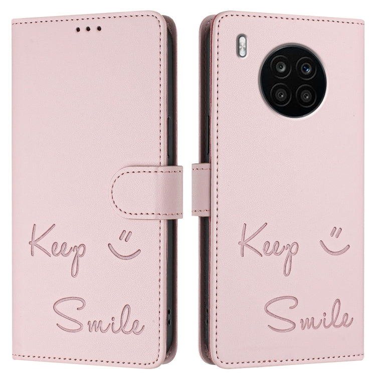 Funda de Cuero Rfid con Relieve Sonriente para Huawei Nova 8I (Rosa)