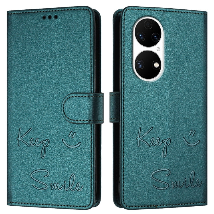 Funda de Cuero Rfid con Relieve Sonriente para Huawei P50 Pro (Verde Pavo Real)