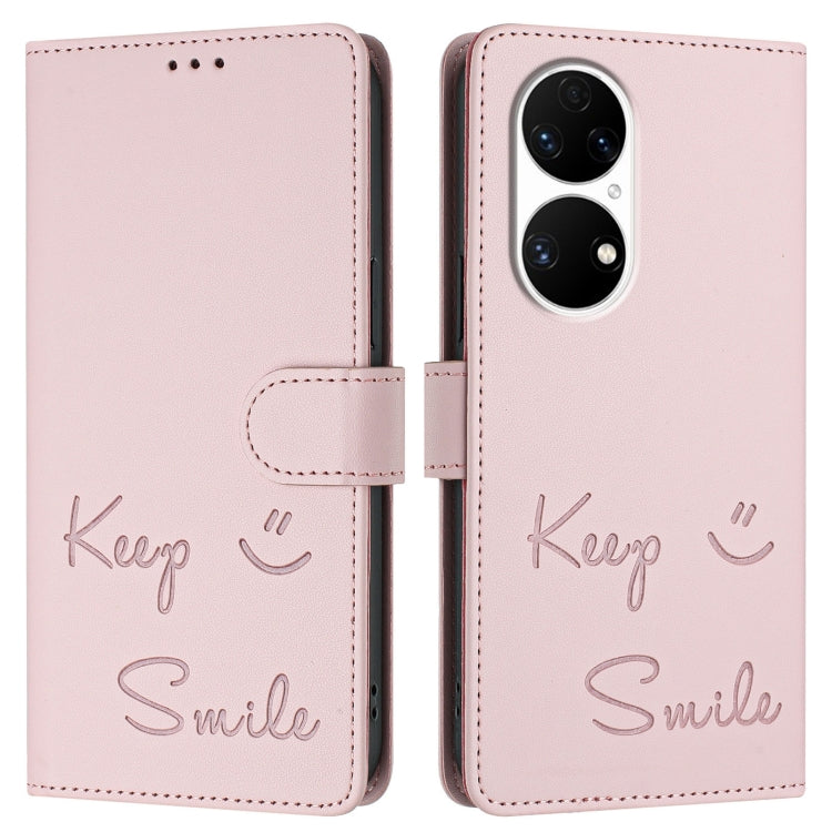 Funda de Cuero Rfid con Relieve Sonriente para Huawei P50 (Rosa)
