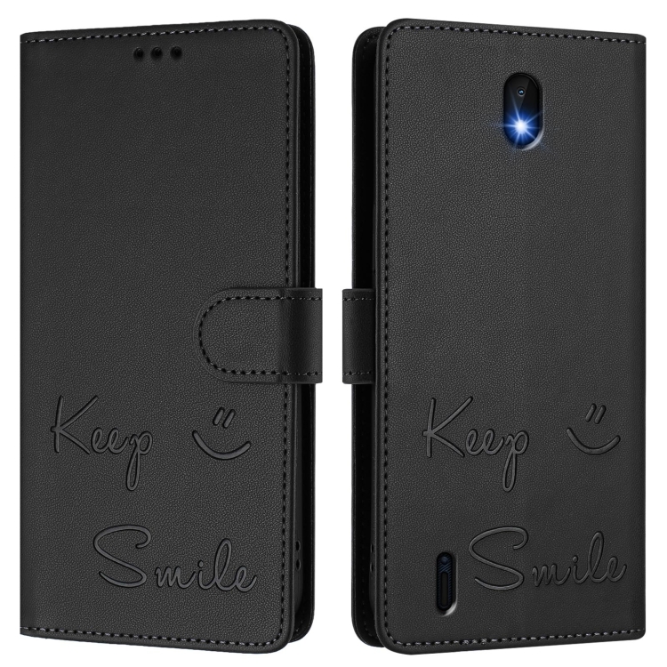 Funda de Cuero Rfid con Relieve Sonriente para Nokia C01 Plus C1 2.ª Edición (Negra)