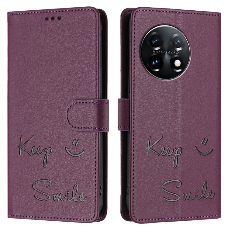 Funda de Cuero Rfid con Relieve Sonriente para OnePlus 11 (Violeta)