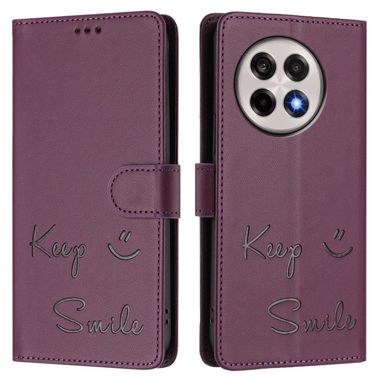 Funda de Cuero Rfid con Relieve Sonriente para OnePlus 13R Ace 5 Pro 5G (Violeta)